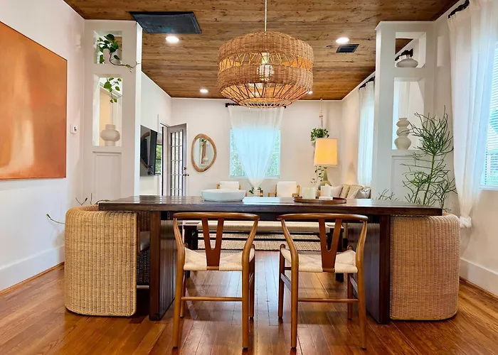 A acomodação no bairro Houston Heights está situada a cerca de 15 minutos andando do Parque Discovery Green e a cerca de 20 minutos andando dos locais comerciais como o Centro de Convenções George R. Brown. A pousada de Houston também está localizada a uma distância de 4.7 km de Centro de Artes Performativas The Hobby. A Poolside Villa With Hot Tub Near Rodeo And World Cup está situada a aproximadamente 10 minutos a pé de Downtown Aquarium Houston, ideal para famílias.